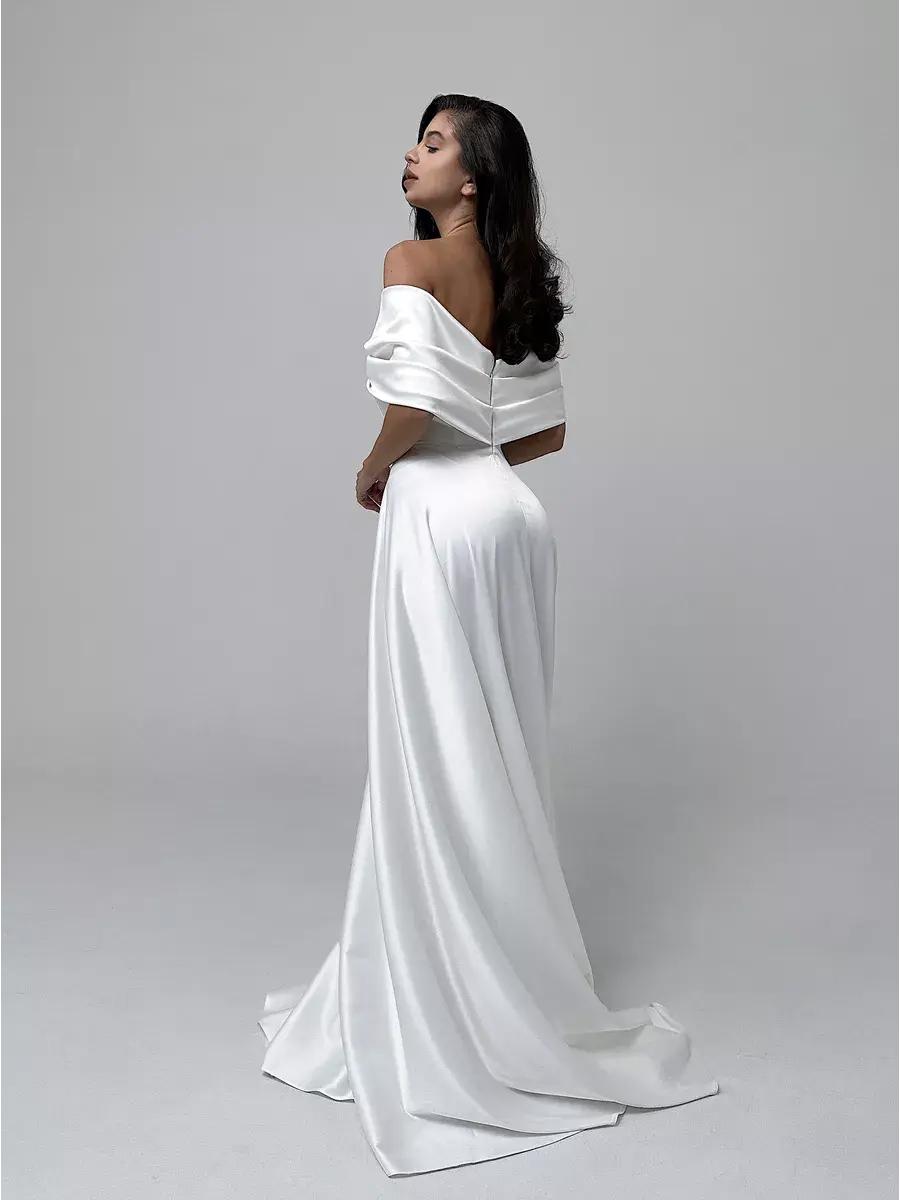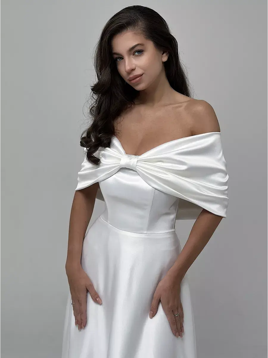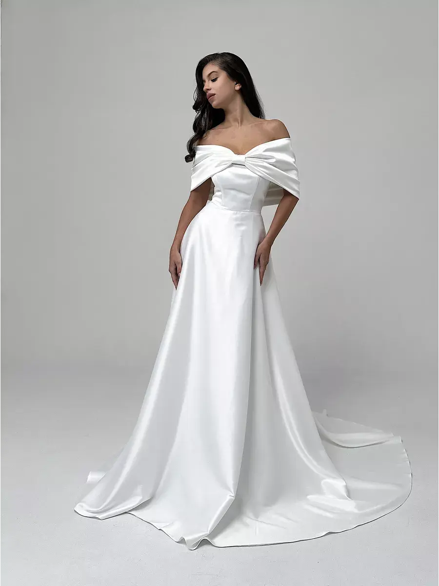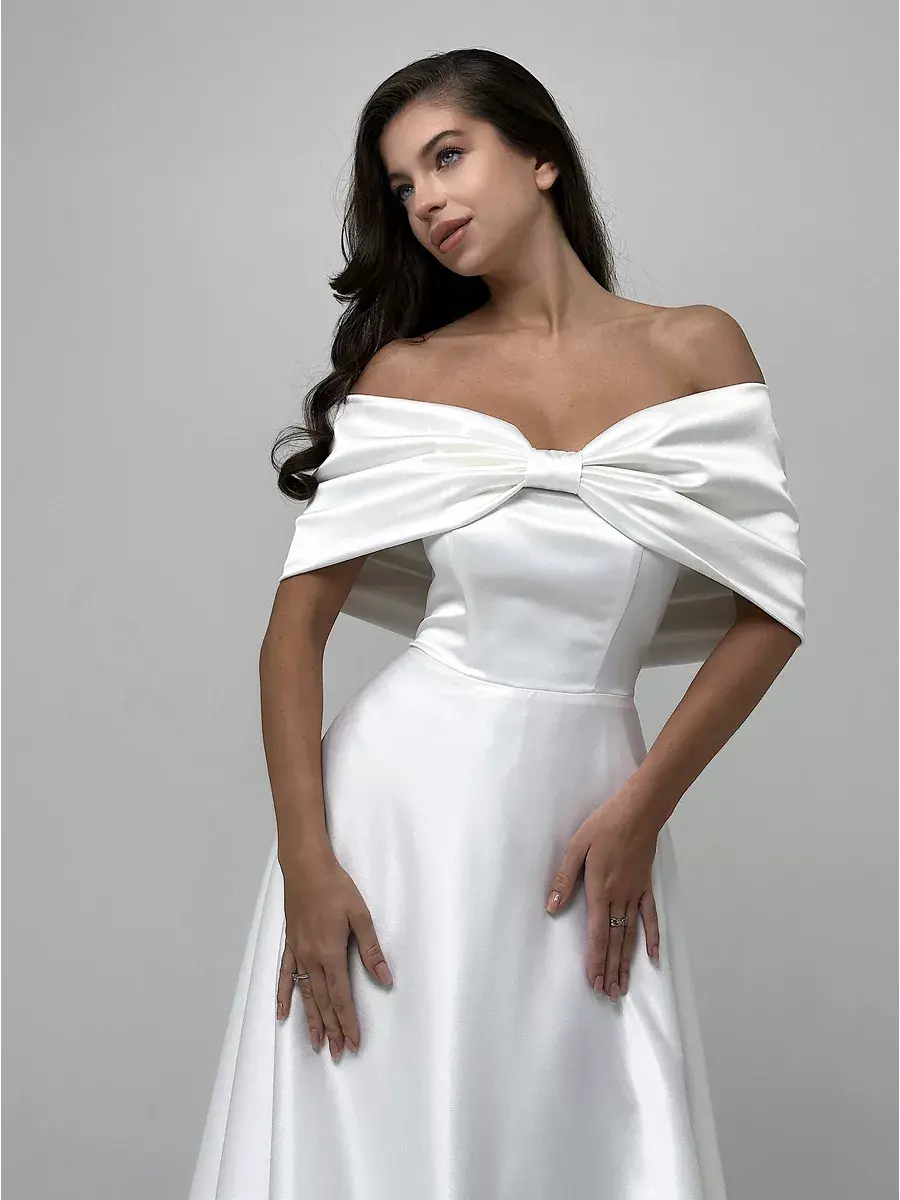 Изящное свадебное платье от нашего бренда – ваш главный атрибут праздника! Материал плотный, удобен в носке и поддерживает форму. Декоративные банты придают образу нежность и утонченность, открытые плечи акцентируют внимание на красоте ваших рук и зоне декольте. Завораживающий дизайн, молния-застежка обеспечивают максимальное удобство. Причудливый крой, юбка-шлейф (подрезается по вашему желанию) создадут незабываемый образ, который станет хитом вашего дня!